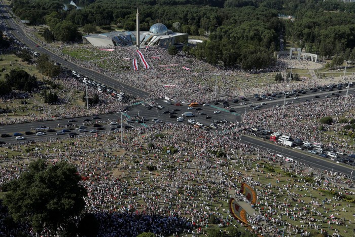 هزاران تن از شهروندان بلاروس در شهرهای مختلف از جمله مینسک٬ پایتخت این کشور علیه الکساندر لوکاشنکو تظاهرات کردند.خیابانهای مرکزی شهر “مینسک” پایتخت بلاروس در روز یکشنبه به مرکز بزرگترین اعتراض به نتایج انتخابات ریاست جمهوری سال ۲۰۲۰ این کشور تبدیل شد.