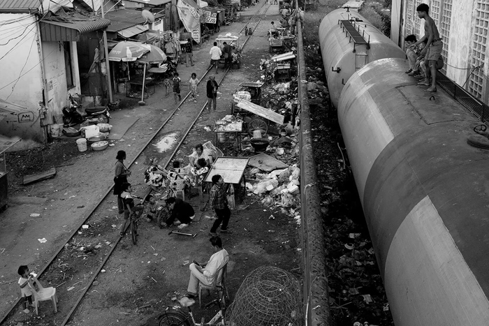 به دلیل کمبود جا، ساکنان در طول روز روی ریل قطار پخش می شوند. هر بار که صدای بوق قطار را می شنوند، به سرعت وسایل آشپزی، صندلی ها، آفتابگیرها و کودکان خود را جمع می کنند تا مسیر برای قطارباز شود تنها چند ثانیه پس از گذشتن قطارهای باری، مسیر راه آهن بار دیگر به مرکز زندگی تبدیل می شود.