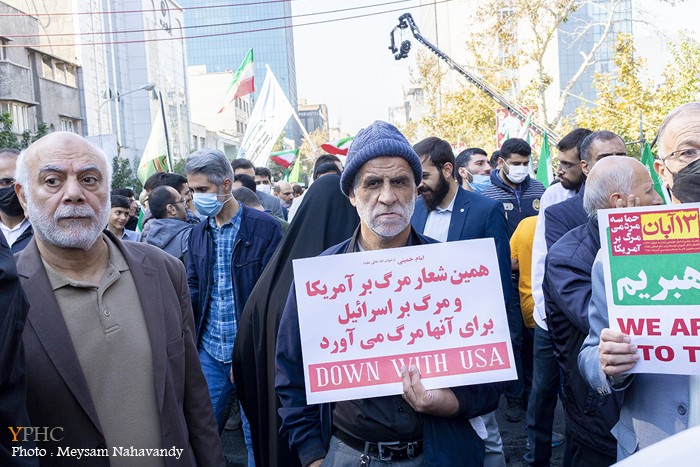 مراسم راهپیمایی سیزده آبان ۱۴۰۱ در تهران صبح روز جمعه در مقابل لانه جاسوسی و خیابانهای منتهی به آن برگزار شد، این مراسم با اجرای برنامه های مختلف، با حضور گستردۀ اقشار مختلف مردمی برگزار شد.