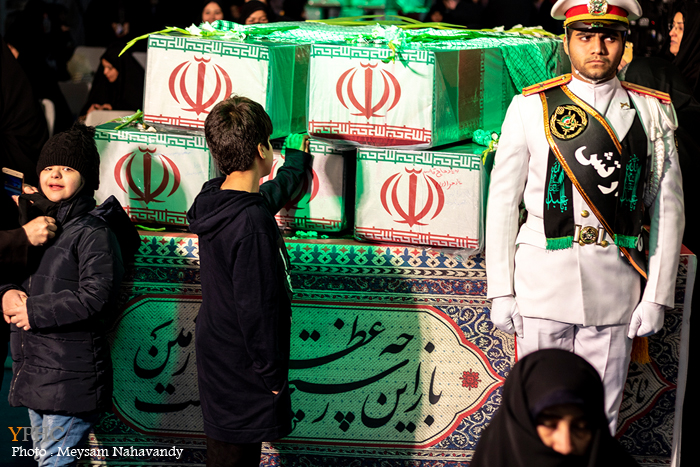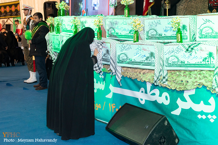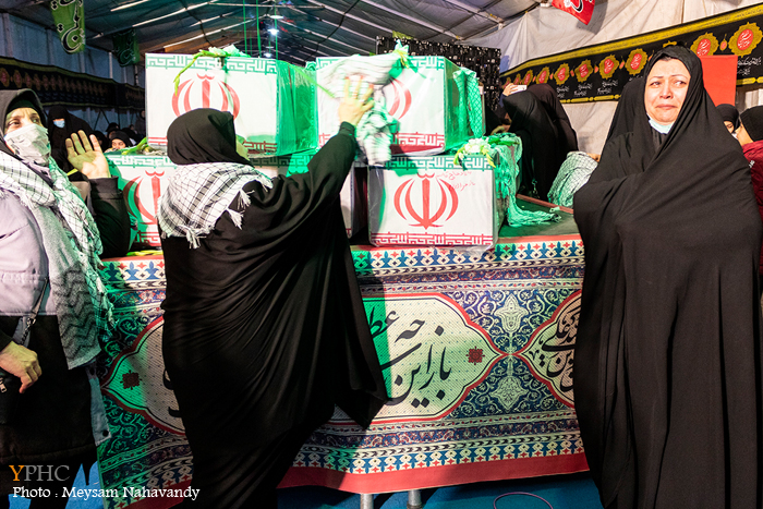 مراسم وداع با پیکر مطهر ۲۰۰ شهید گمنام در باغ موزه دفاع مقدس