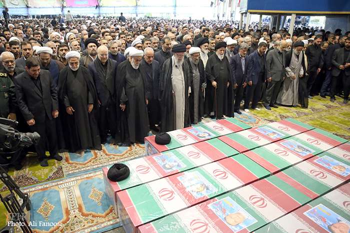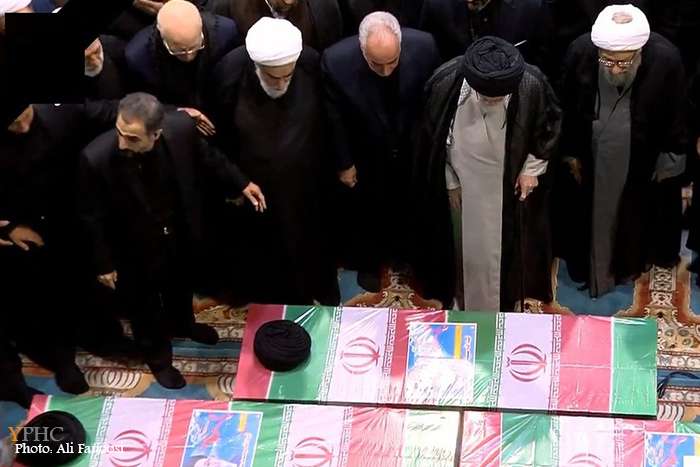 حضرت آیتالله خامنهای رهبر معظم انقلاب اسلامی روز چهارشنبه با حضور در دانشگاه تهران و در میان خیل عظیم تشییع کنندگان، بر پیکر شهدای سرافراز خدمت، حجتالاسلام والمسلمین سیّدابراهیم رئیسی رئیسجمهور اسلامی ایران، دکتر امیرعبداللهیان وزیر امور خارجه، حجتالاسلاموالمسلمین آلهاشم نماینده ولیفقیه در آذربایجان شرقی، دکتر رحمتی استاندار آذربایجان شرقی، سردار سید مهدی موسوی، خلبان سید طاهر مصطفوی، مهندس بهروز قدیمی، و خلبان محسن دریانوش، نماز اقامه کردند.و سپس مراسم تشییع پیکر شهدای خدمت با حضور گسترده مردم تهران برگزار شد.